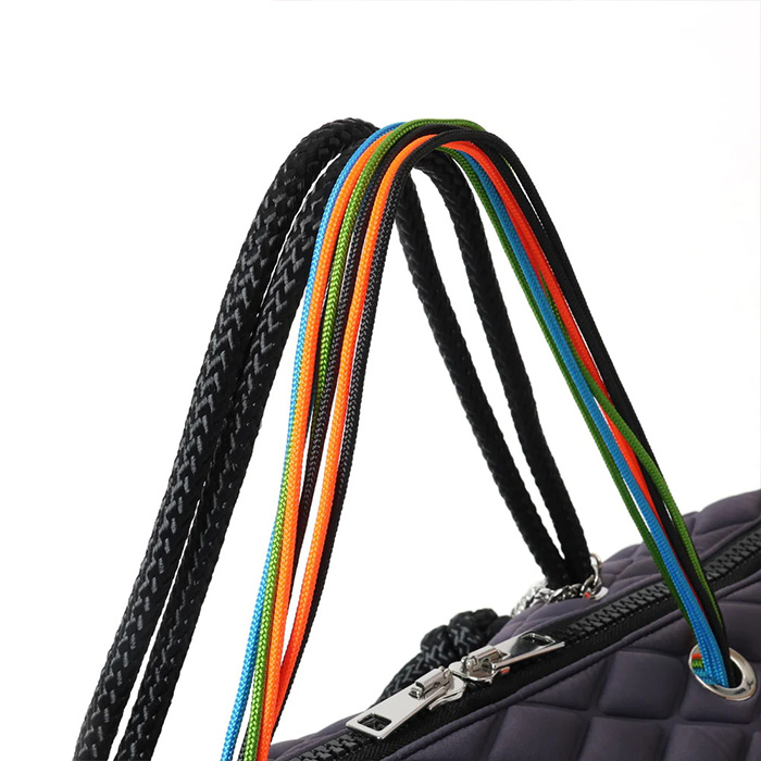 ストラップ部分にはブランドを象徴するカラフルな手作りロープ(ディンギーロープ)が使用されています。