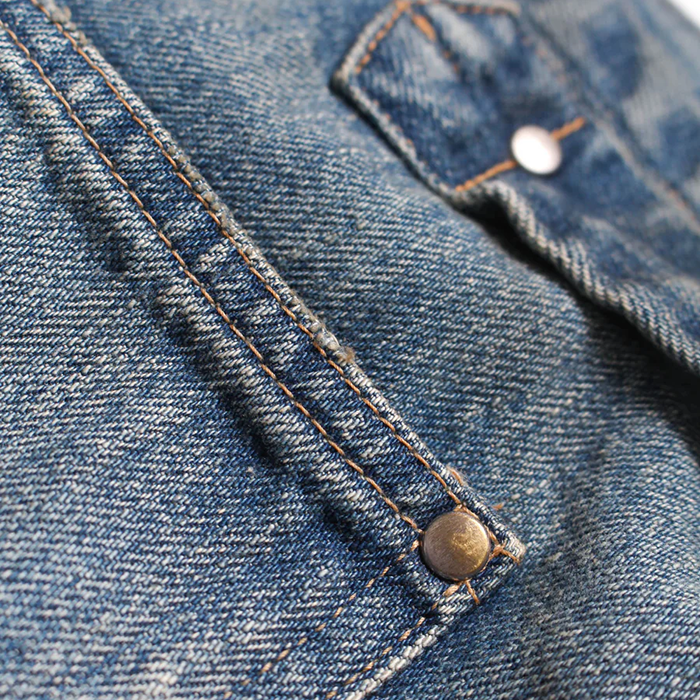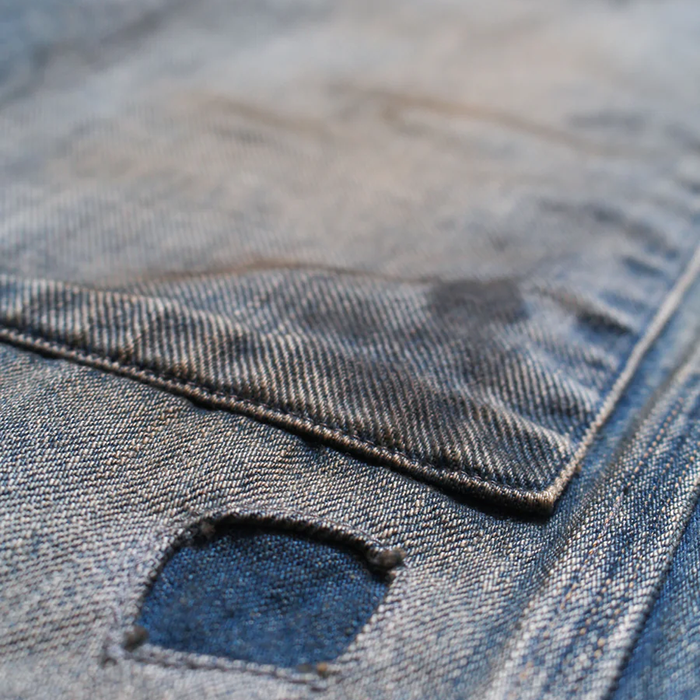 デニムは色落ちをする特性上、洗濯時に擦れや歪みが出てしまいます、ご了承ください。