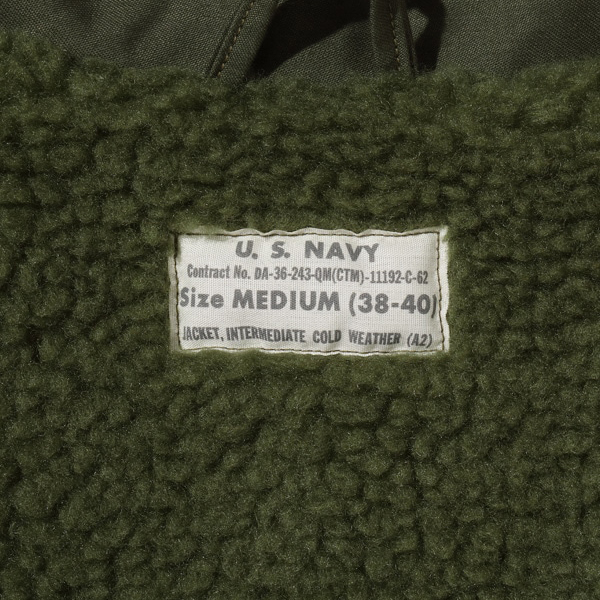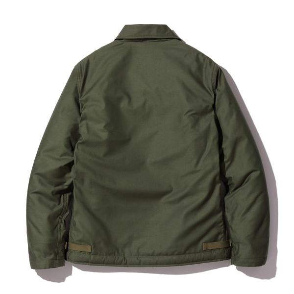 米海軍の甲板作業用ジャケットN-1の後継モデルとしてこのA-2デッキジャケットが採用された。前モデルのN-1と比較するとその色味や使用素材に変化が見られ、表地はコットングログランからバックサテン地に、裏地はアルパカウールからナイロンボアへと変更されており、生産性とコスト面を見直した結果であった。仕様については、釦とジッパーで開閉するフロントの比翼仕立てと袖口に内蔵されたリブなど基本的なディテールはN-1を継承しているが、襟の変更と胸ポケット、裾のアジャスターが追加されている。シンプルな外観と必要最低限の機能性を兼ね備えたこのデッキA-2は、米海軍らしいユーティリティージャケットである。