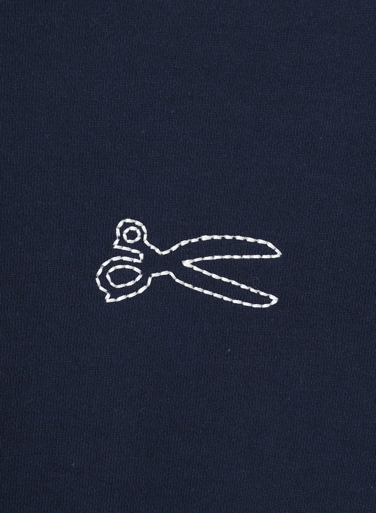 胸元に施されたシザーズマークのチェーンステッチがワンポイントになるプルオーバー。