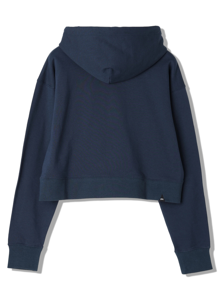 すっきりとしたクロップド丈のシルエットが魅力的なフーディー。