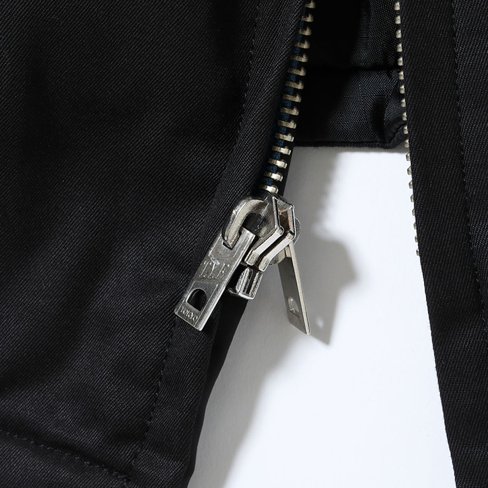 ベトナム中部のフエ省フバイに駐留していた米兵が1960年代中期にカスタムオーダーで仕立てたリバーシブルタイプのベトジャン。コットンツイル側は、胸に虎と「福」の文字、袖に龍、背中にベトナムマップが刺繍された王道のデザイン。リバーシブル面のナイロンリップストップ側は、胸に星条旗と南ベトナム軍のフラッグ。背中の風景柄は、マップ柄が主流のベトジャンにおいてとても珍しい。ブラックにはブラックのライナー生地、グリーンにはタイガーストライプをプリントしたオリジナルのライナー生地を使用している。