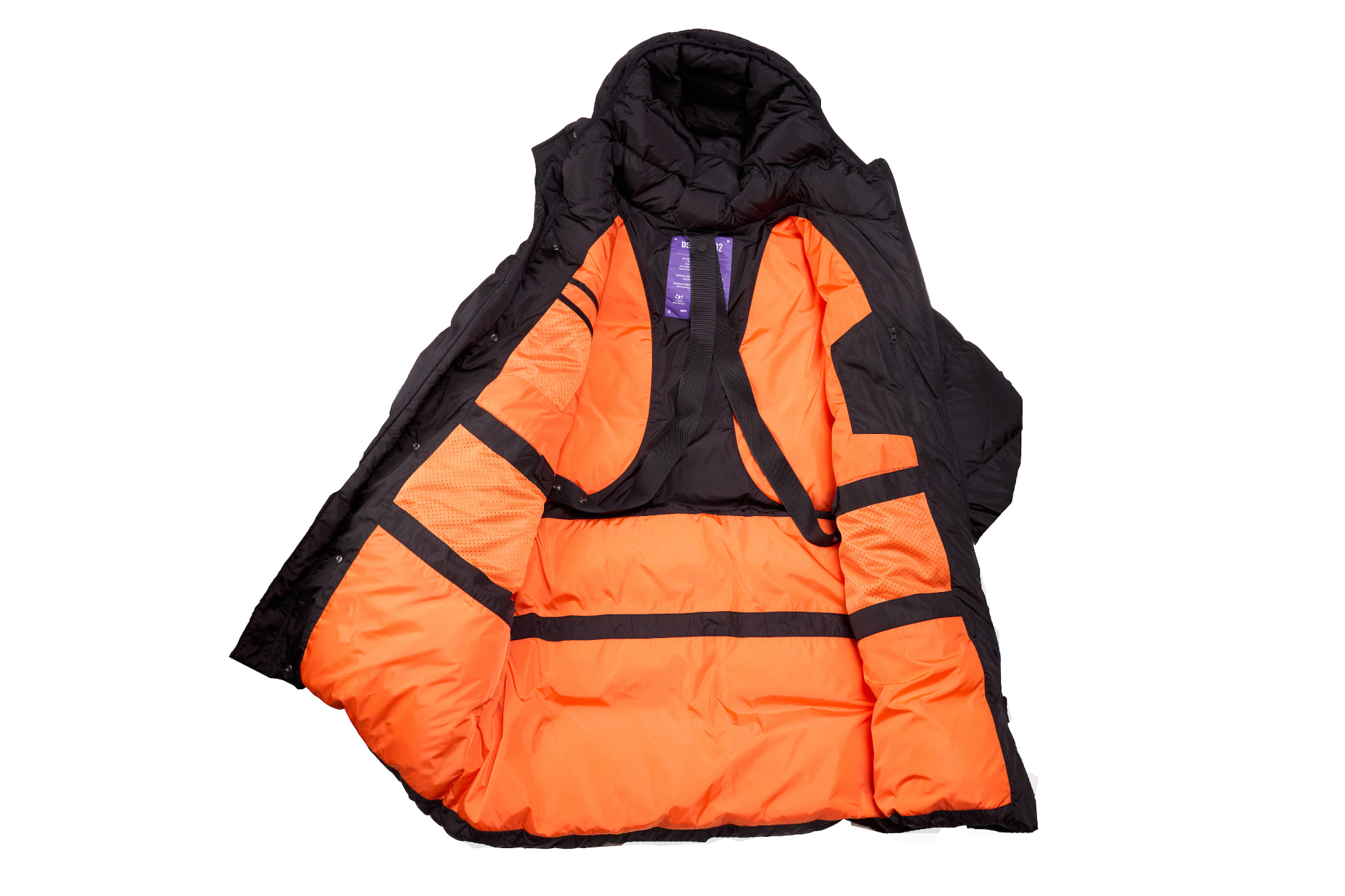 光沢感のあるシャイニーナイロンを使用したダウンコート。