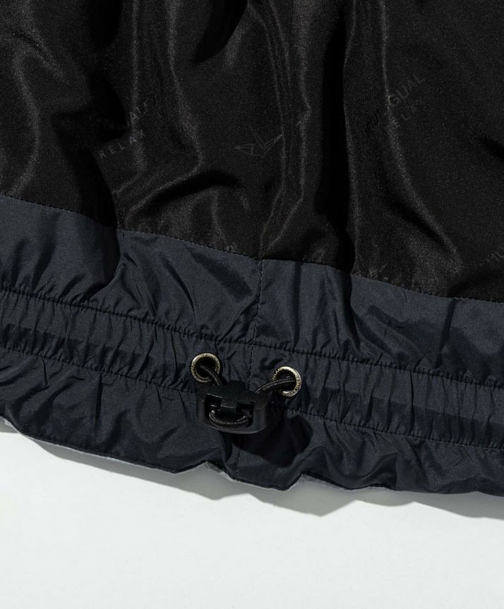 外側のボリュームが輪郭を引き立て、内側のフードが首元に心地よいフィット感を演出。