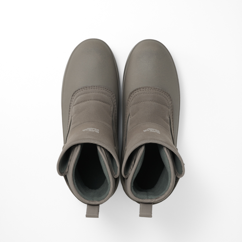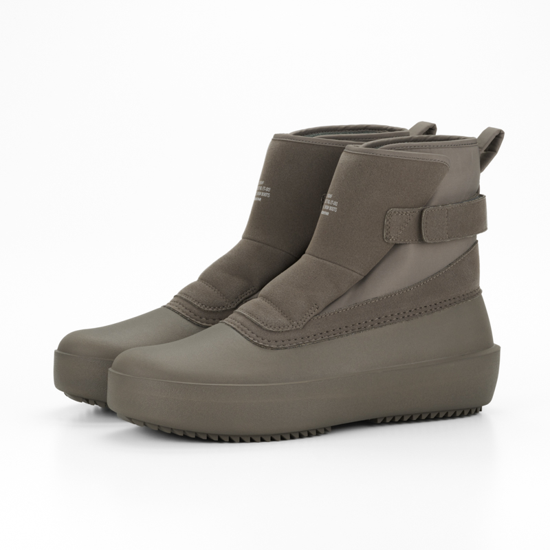 靴底に氷上で優れた防滑性を発揮するガラス繊維配合ラバーを搭載したミニマルなブーツタイプ。