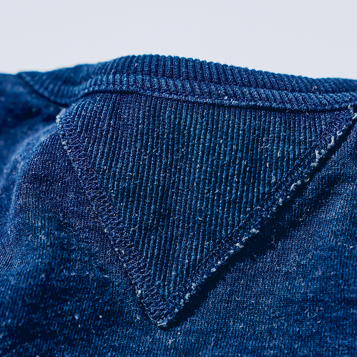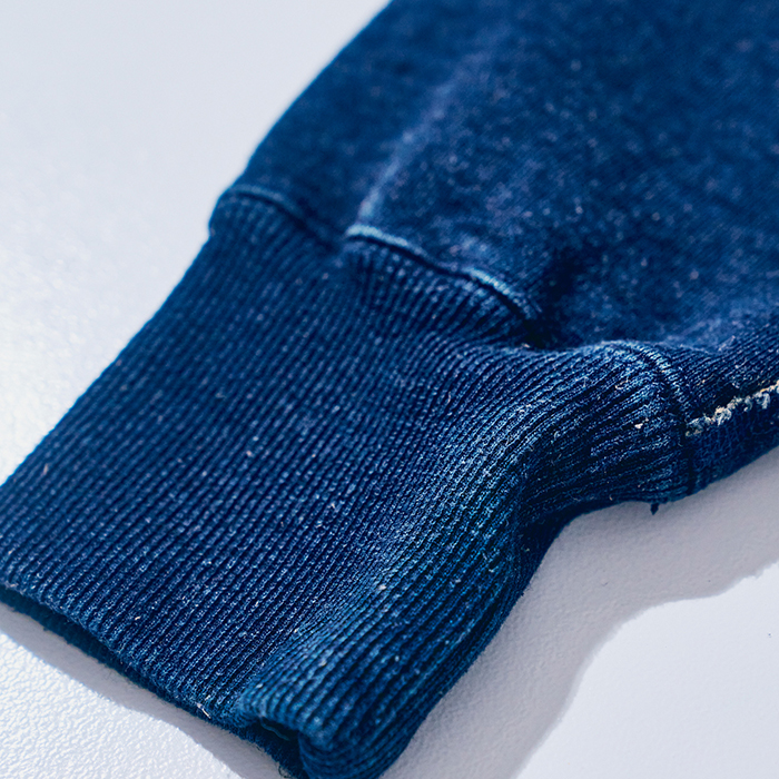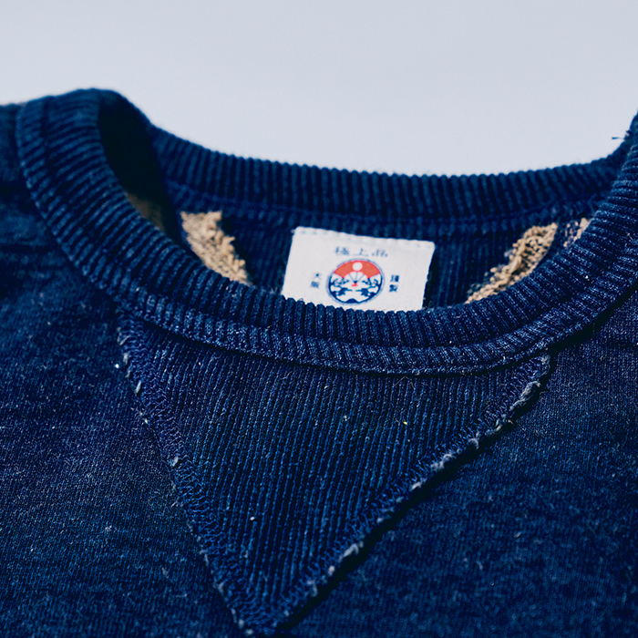 Spec:30/10 裏毛/14.5oz 柿渋染めインディゴスウェット/フラットシーマ縫製/二本針バインダーネック/製品染め/日本製