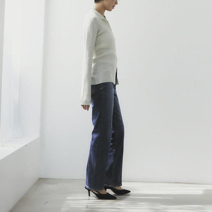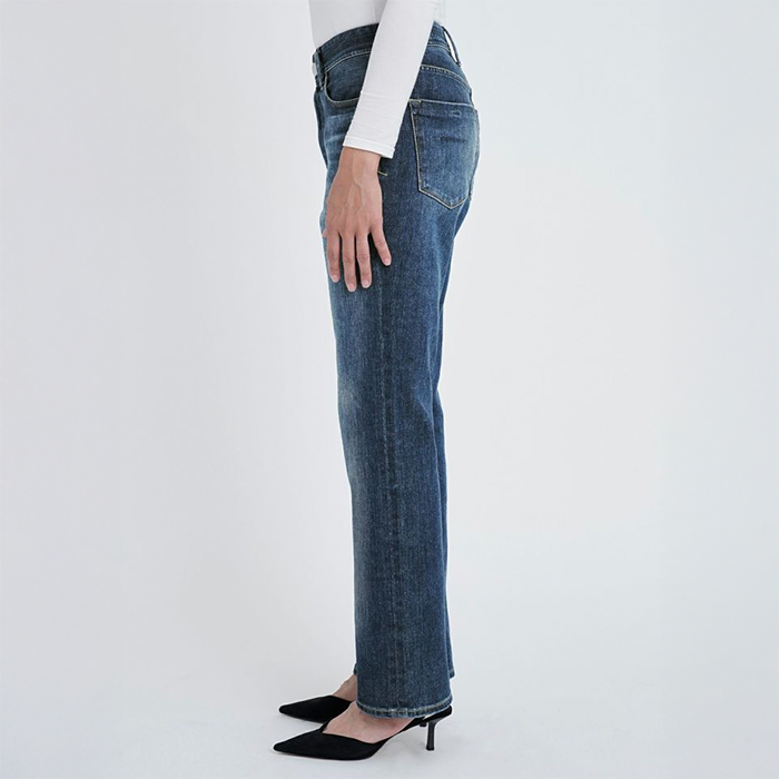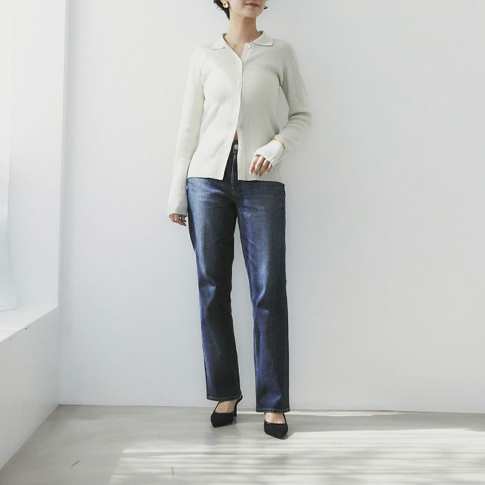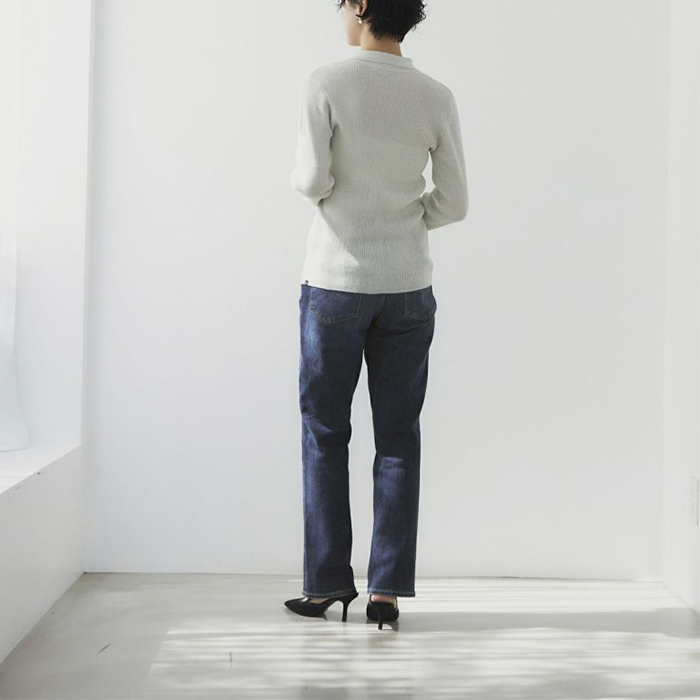 脚の付け根からすらっと伸びるシルエットが特徴のストレートデニムLOUISE。太すぎず細すぎない絶妙なゆとり感が、脚のラインを拾いすぎず美脚見えする1本です。また、脚の付け根からすらっと伸びるストレートシルエットと長めに設定された丈感が、脚長見えまで叶えてくれる優秀シルエットです。ローライズLOUISEは通常のLOUISEより股上がベルト巾1個分浅くなっており、ウエストより少し低い位置にフィットします。また腿まわりを少しすっきりとさせたシルエットです。