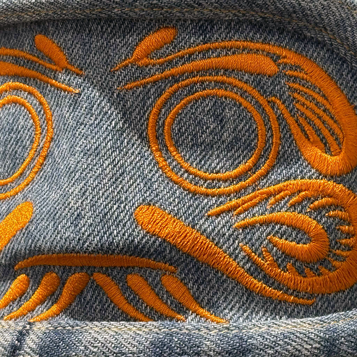 デニムは色落ちをする特性上、洗濯時に擦れや歪みが出てしまいます、ご了承ください。