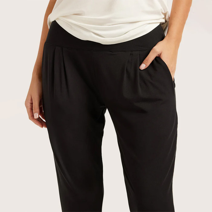 幅広のウエストゴム仕様で、締めつけ感のない快適なフィット感を実現。