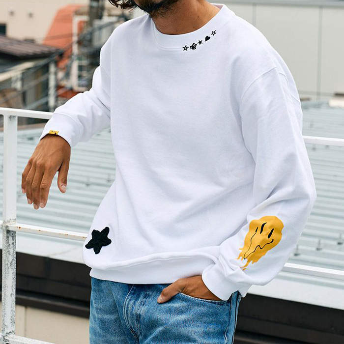 STUD MUFFIN(スタッドマフィン) 614-02856 オーセンティックパイル ウェービーロゴ スマイルスエットシャツ WHT