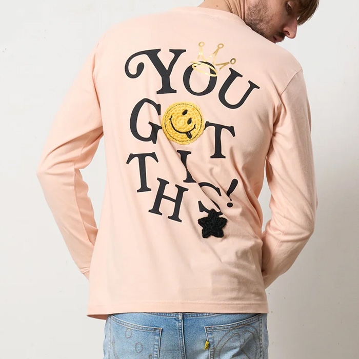 「5.6ozコットン天竺 YOU GOT THIS シークイン LS Tシャツ」