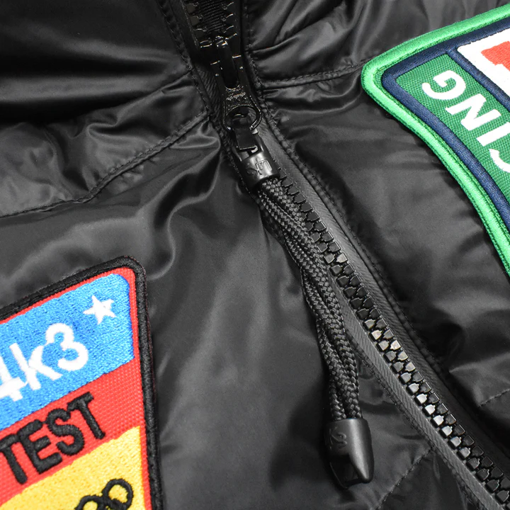 止水仕様のYKK製ダブルジッパーと裏側の防風フラップが冷気や水の侵入を防ぎます。