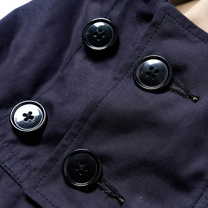 デザインから紐解くと、1950年代初頭に同海軍で支給されたファウルウェザー・スモックをよりシンプルに発展させたものであることがわかる。