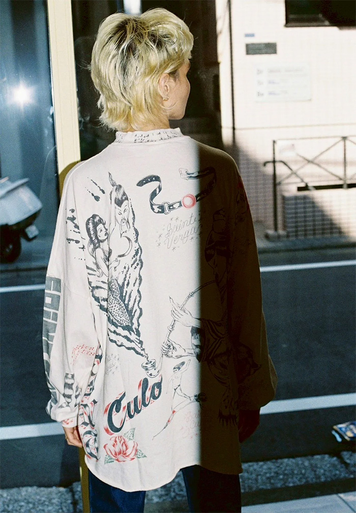独自のタッチで描き下ろされたイラストを落とし込んだロングスリーブTシャツ。