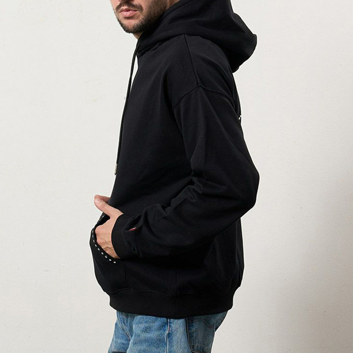 STUD MUFFIN(スタッドマフィン) 614-02858 ヘビーウエイト裏毛パイル メタルスタッズウェービーロゴプルパーカー BK