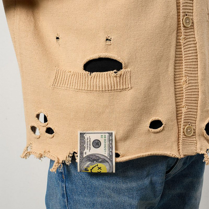 手作業で入れたハードダメージなワイドシルエットカーディガン