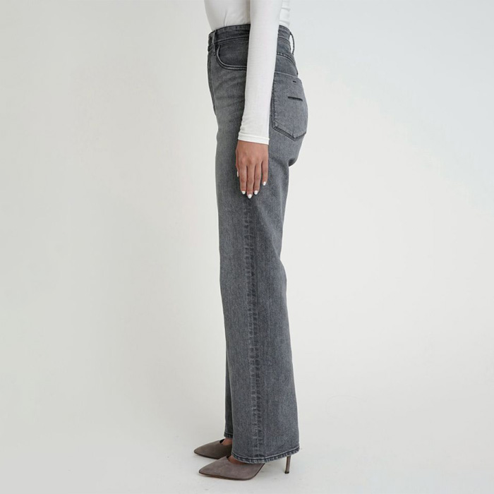 ゆとりのあるストレートはどうしても野暮ったくなりがちですが、LEAはパターンにこだわることで美脚に、