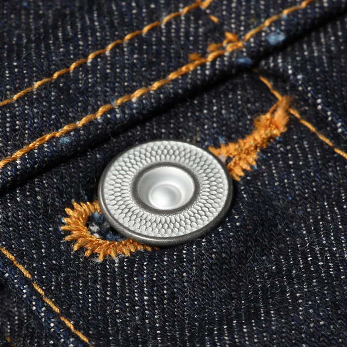 生地には風合い豊かな14.5ozのJUMBOセルビッチデニムを使用。着込むほどに味わいが増し、経年変化がお楽しみいただけます。