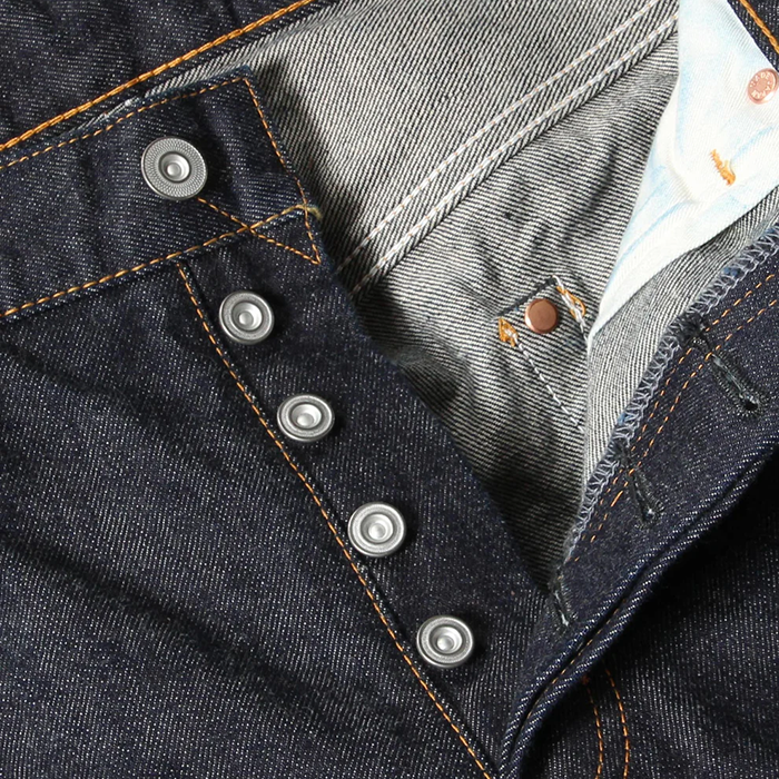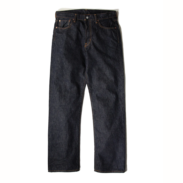 緯糸に茶綿を使用したセルビッチデニム『JUMBO DENIM』を使用した、ベーシックな王道ストレートシルエットのジーンズ。