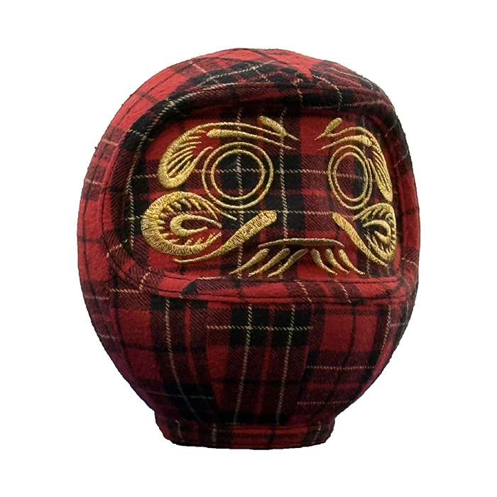 ミカヅキショウテン アップサイクルアートだるま チェックネル素材/FEE-B04