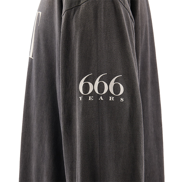 グラフィックを削ぎ落としたミニマルな表情ながら、袖に忍ばせた「666 YEARS」のプリントが、SAINT Mxxxxxxらしい反骨とユーモアを効かせています。
