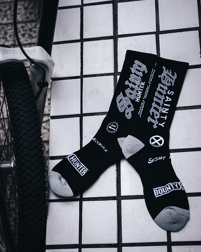 SAINT Mxxxxxx × BOUNTY HUNTERの世界観を、足元に落とし込んだコラボソックス。