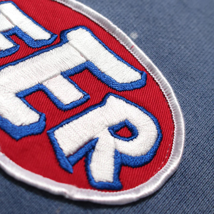 モーター関連メーカーをイメージして構成したロゴパッチを配し、工業的で力強いムードをプラスしたジップパーカー。