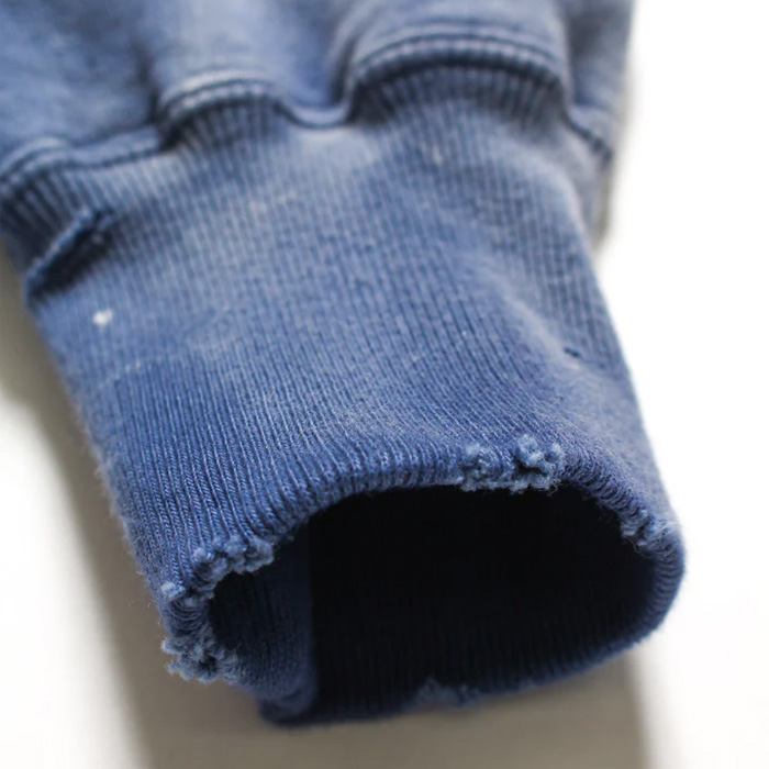 起毛無しの厚地裏毛を使用し、特別な編み機が生み出すヴィンテージの質感をそのまま残した仕上がり。