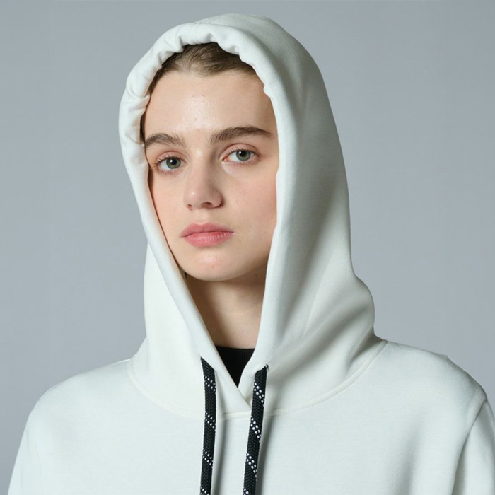 シンプルながらも着回しやすいダンボールフードパーカー。