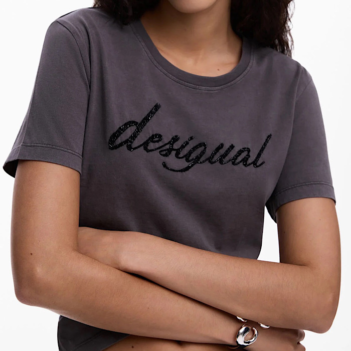 デシグアル 26SWTK082058 Deshigual / 刺繍ロゴ入りTシャツ グレー レディース カットソー
