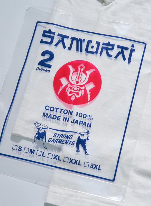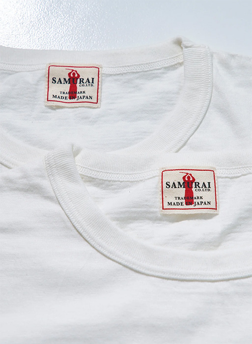 9番の糸を丸胴にて編み立てたサムライオリジナル仕様の2パックTシャツは、程よい厚みで、夏場でもシャツの下に着用できます。