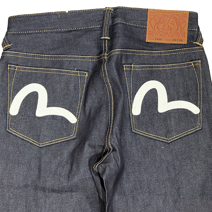 バックポケットにはEVISUを象徴するホワイトのカモメプリントを配置。
