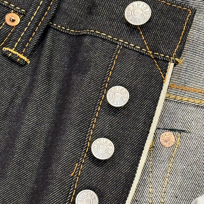 未洗いのリジッドデニムならではの深いインディゴとハリのある質感が特徴で、穿き込むほどに自分だけの色落ちへと変化していきます。
