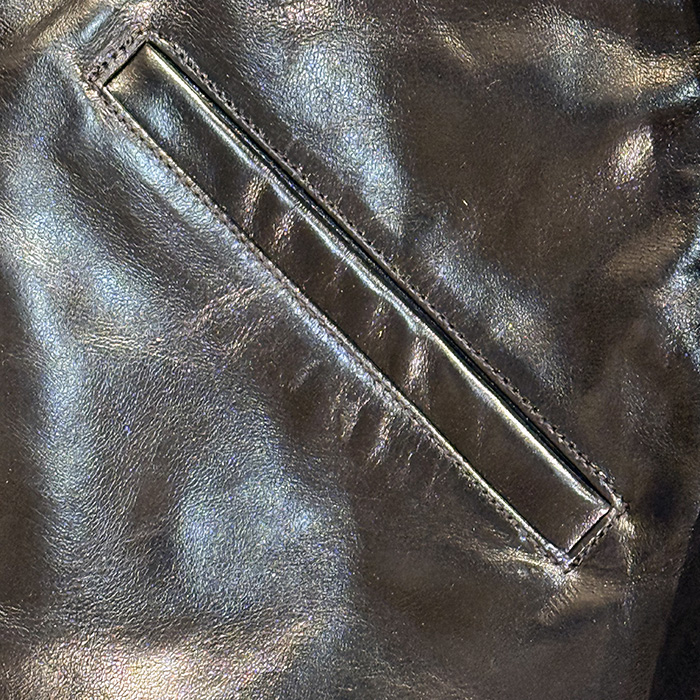 使用している革は約1.2mm厚。重すぎず、硬すぎない絶妙な厚みで、着始めから体に馴染む快適な着心地を実現しています。