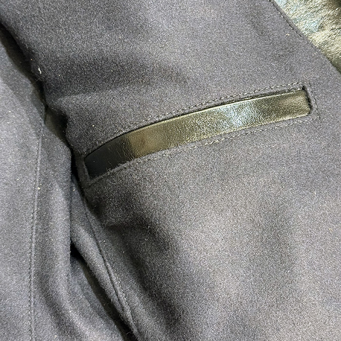 身頃裏地には保温性に優れたウールメルトンを使用。袖裏には腕通しの滑りを考慮したコットンフランネルを採用し、着心地と実用性を両立しています。
