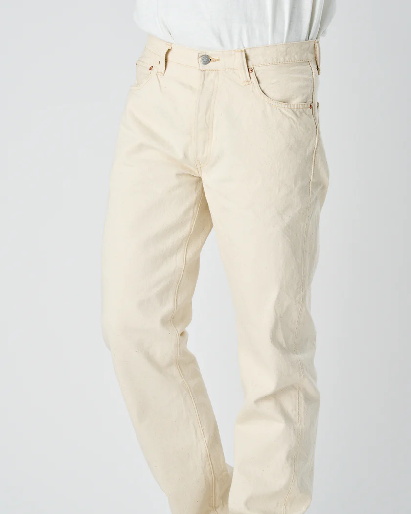 「1101EC Ecru Selvedge Straight Denim」のご案内となります。染色、ブリーチを施さず綿カス(葉や茎の破片)を残し、綿花本来の持つ色目と、ダメージの少ないふくよかな風合いを活かしたナチュラルカラーのオーガニックコットンデニムです。定番同様防縮加工を施していない13oz セルビッチデニムは、肌触りが最高です。定番ジーンズの1101シルエットを採用しているので、長年愛用いただけるアイテムです。またこの綿カスは洗濯を繰り返すことで落ちてゆきます。