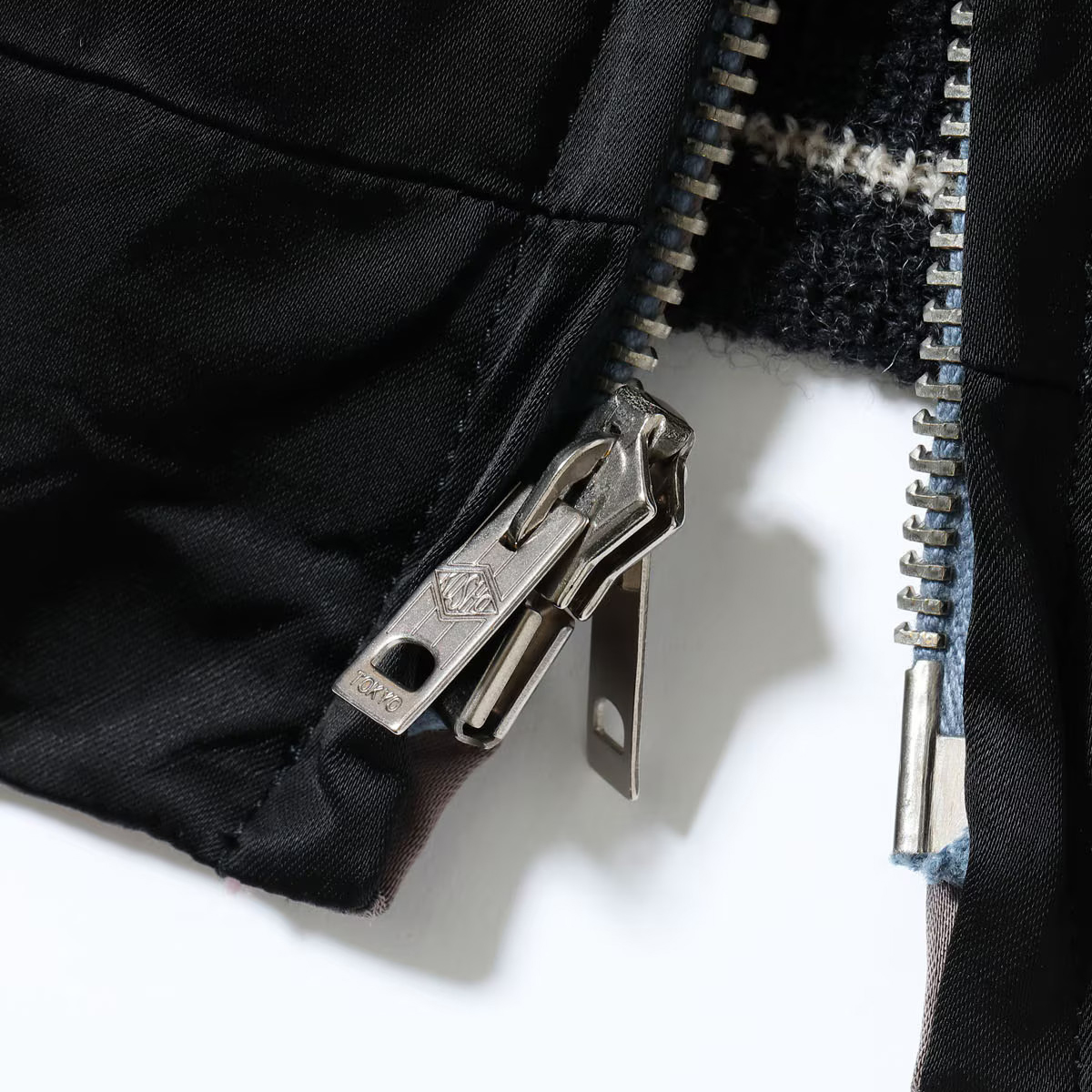 テーラー東洋のコレクションの中でも特に厳選した逸品をディテールにこだわり再現するのが、このスペシャルエディション。横振り刺繍で緻密に描かれた図案はもとより、アセテート生地の打ち込みを調整してヴィンテージと遜色なく仕上げ、ウールリブも旧式の横編み機を使用して1着ずつ編み上げている。リバーシブル仕様のファスナーについても50年以上前のファスニング機械を再稼働させ、当時と同じ手曲げのものを再現。テーラー東洋の前身である港商(こうしょう)商会のラベルを使い、ヴィンテージスカジャンの最盛期を彷彿とさせる仕上がりとなっている。