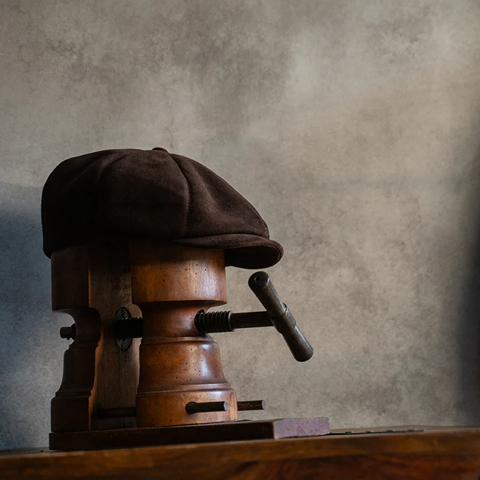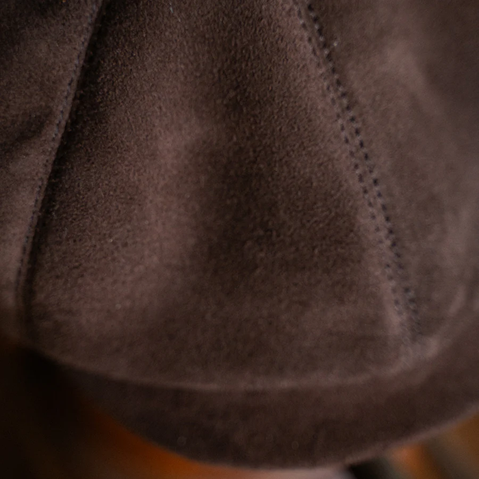 BRUNELでは定番となった8 PANEL CASQUETTEを、ブラウンのディアスエードで製作。