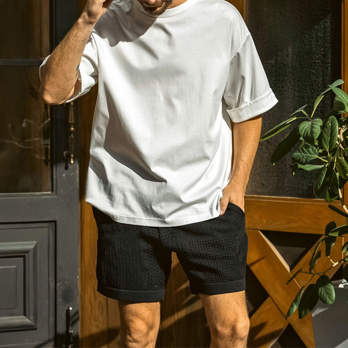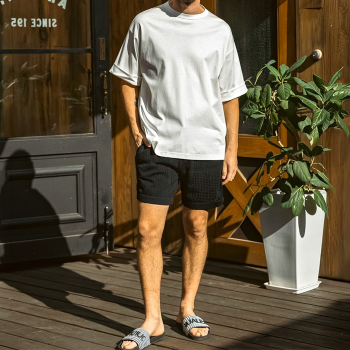 立体的な編地が肌との接地面を減らし、風を通すシアーな質感と相まって、真夏でも驚くほどドライで軽快な着用感を実現しました。