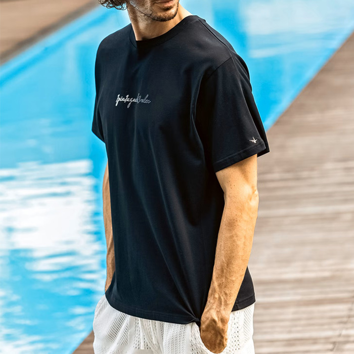 シルエットは程よくゆとりを持たせたバランスで、ラフになりすぎず大人らしい余裕を演出。1枚での着用はもちろん、ジャケットやシャツのインナーとしても活躍し、シーズンを問わず幅広いスタイリングに対応します。