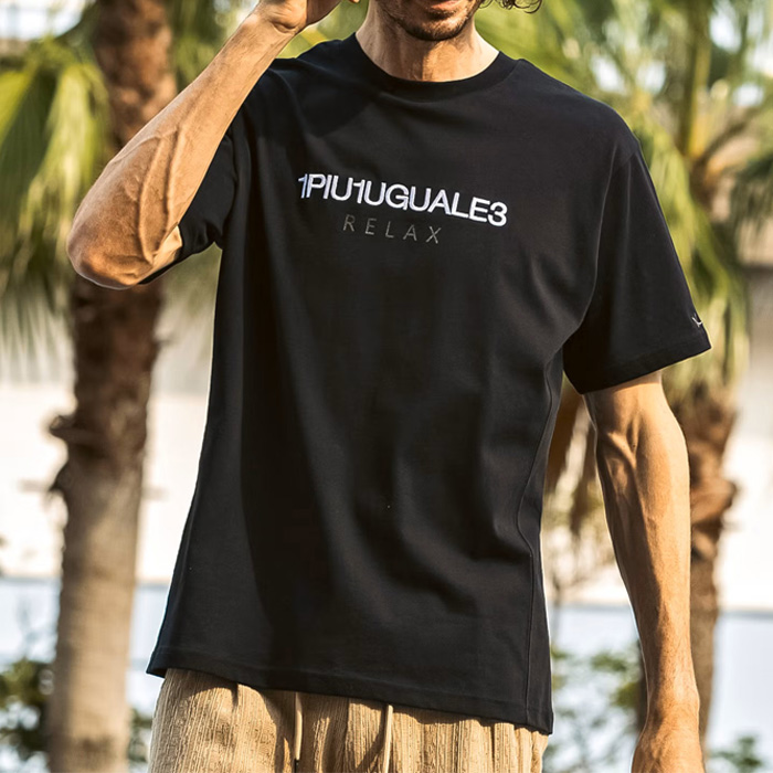 1PIU1UGUALE3 RELAX(ウノピゥウノウグァーレトレ リラックス) リバースロゴ半袖Tシャツ UST-26069 ブラック