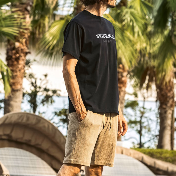 シルエットは程よくゆとりを持たせたバランスで、ラフになりすぎず大人らしい余裕を演出。1枚での着用はもちろん、ジャケットやシャツのインナーとしても活躍し、シーズンを問わず幅広いスタイリングに対応します。